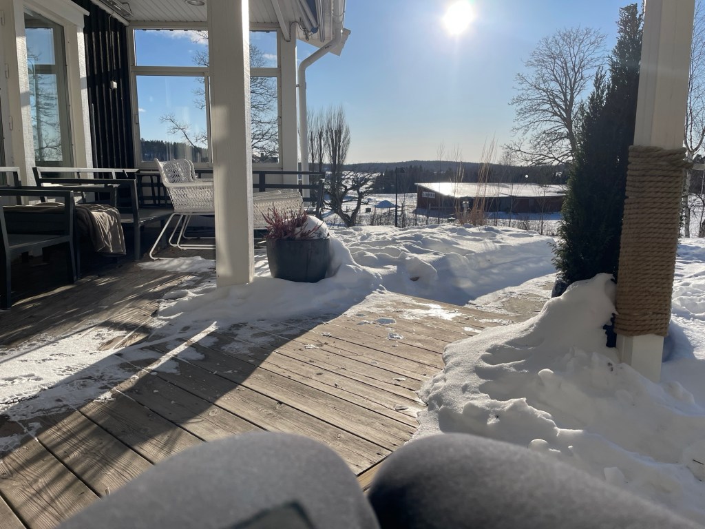 Sitter just nu mot solig södervägg, med jacka och mössa, för att bara få lite frisk luft. Värmer ändå ganska bra, i lä.