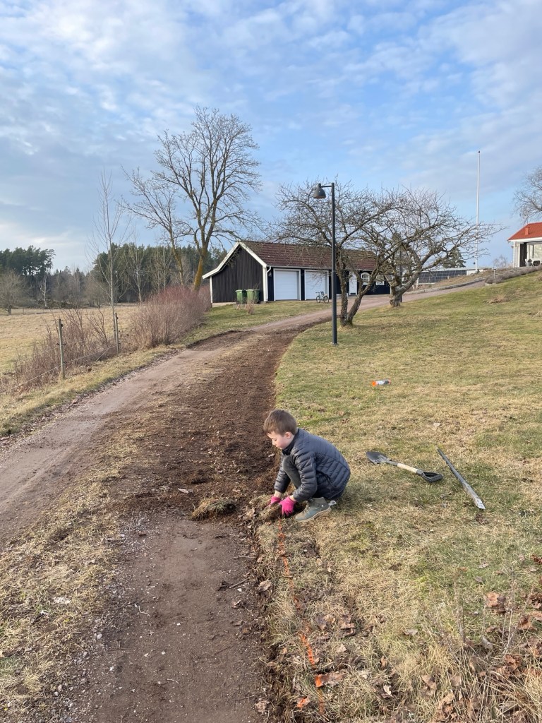 Nytt/nya potatisland – det stora potatislandet vi anlade när vi flyttade in för drygt 4 år sedan har haft potatis i sig varje år, och behöver få vila lite. Köksträdgården har fått agera potatisland med, så nu är det faktiskt dags att tänka lite smart. Nere vid vår brunn, där det ”stora” potatislandet ligger, kommer vi förbereda för ett antal långsmala bäddar. Det kommer vi göra genom att täcka med ensilageplast, och i en rad i taget ta bort platsen, lägga kartong, matjord och en massa täckmaterial. Sen gör vi så allt eftersom vi behöver fler land att varva med, tills vi har sammanlagt 4 potatisland att gå runt på. Det kommer dock inte bli klart i år alltihop, utan när behovet uppstår – men plasten kommer vi täcka med i år för att bli av med ogräs och förbereda marken.