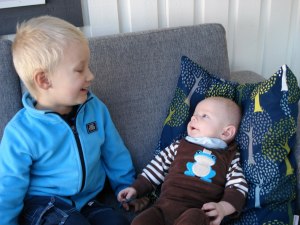Gick igenom lite foton igår kväll, och hittade två med båda pojkarna, ett från när Lukas var nyfödd och ett häromdagen när han är 3½ månad. Helt sjukt vad mycket han har växt! Kul nu när Oliver börjar tycka att Lukas ger lite mer gensvar, han brukar vilja att Lukas ligger bredvid honom i sängen när vi läser gonattsaga, det är mysigt!