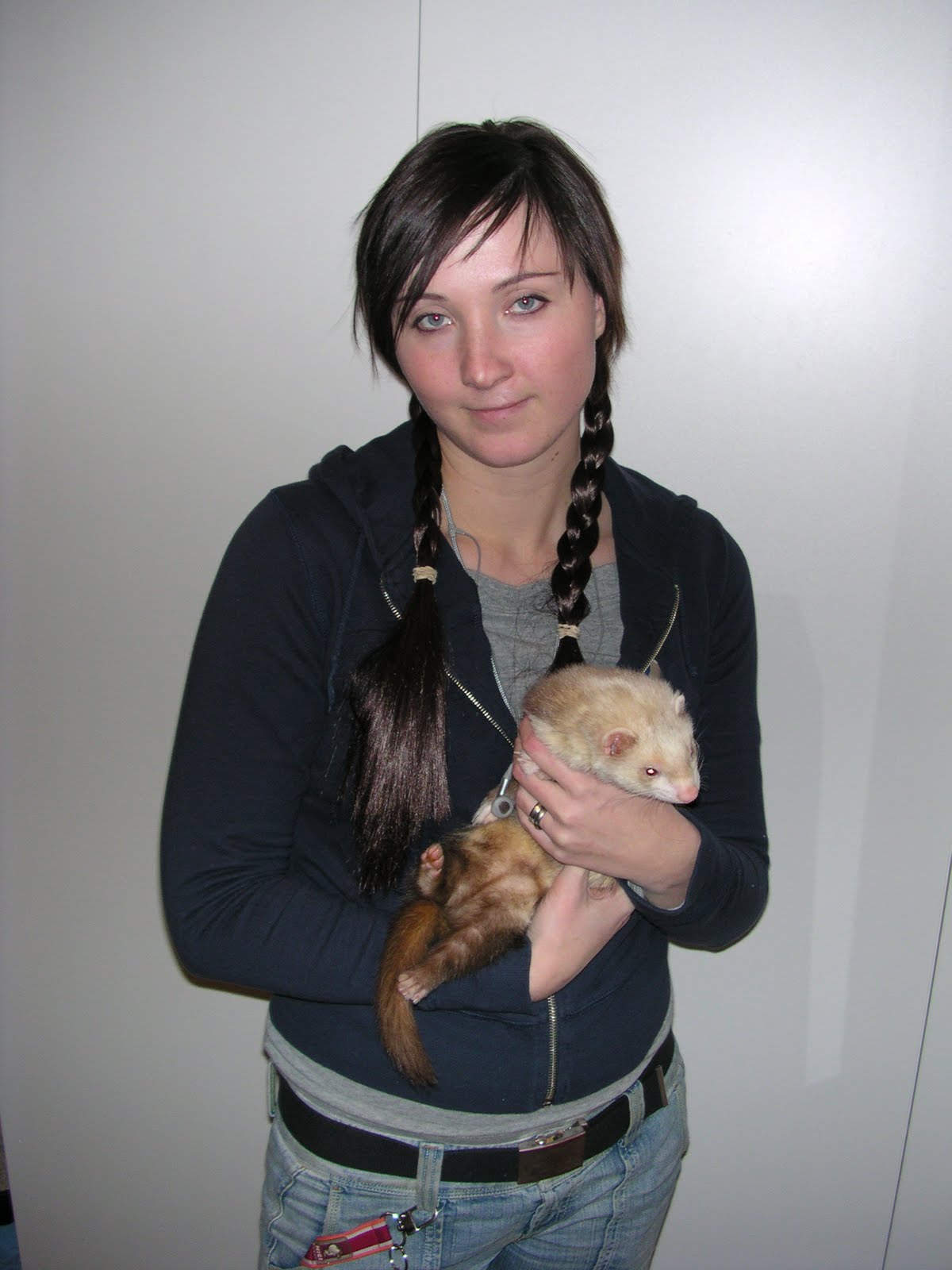 Här var det långt hår. Den här gången är det dock inte äkta. Det är däremot illern (vår tam-iller Leo, som vi tyvärr inte har kvar)