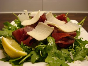 Vi har alltid lite fel tidsinställning när det gäller det där med fredagsmys, det blir liksom alltid torsdagsmys istället. Vet inte varför, men det är alltid då vi är som mest sugna på något gott och ett glas vin. Igår var det ingen skillnad, utan det blev två goda ostar, baguette och en bresaola-sallad som ni bara måste testa! Det är bresaola på ruccolabädd med parmesan, och så ringlar man över olivolja, citron, salt och peppar. Bland det godaste man kan äta, enkelt som det är.