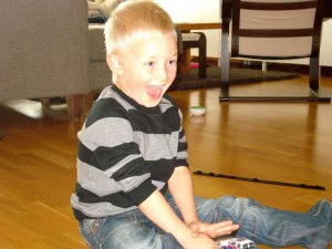 Fast i de flesta sammanhäng är han än så länge en liten buspojk, som här, när han och Lukas kör bilar mellan sig… =)