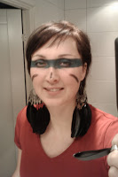 Visst, jag har örhängen och halsband med fjädrar, och jag kommer ha mina svarta ”ugs”, men det kändes inte riktigt tillräckligt, så i går gick jag in för att testa lite varianter på indiansmink med. Hittade en jättecool variant på nätet (som jag visst inte hittar igen) där det är sminkat rakt över ögonen. Som tur var så provsminkade jag igår, det var visserligen lite coolt, men inte särskilt snyggt… (ok, jag gjorde den dessutom på max 5 minuter och lite slarvigt, det var ju mest för att se lixom)