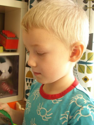 | Oliver var inte heller helt i farten utan har mått illa hela dagen. Trodde han hade klarat sig ända tills han åt kvällsmat – han kom glatt in i badrummet där vi stod och meddelade att han hade kräkts. Vi trodde han skojjade eftersom han såg så glad ut. Det gjorde han inte. |