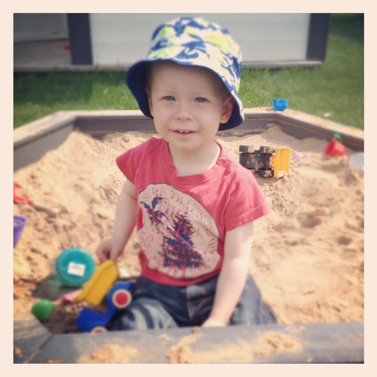 | Efter en stund i sandlådan tömde vi till och med blöjan på ett halv kilo sand… |