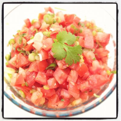 Sen bar det hemåt för lite grillning, det blev chili- och limemarinerad lax som hamnade på grillen ihop med lite grönsaksspett. Tyvärr visade det sig vara lite svårt att vända på laxen eftersom skinnet fastnat på grillen, så det blev inga foton på det, men gott var det. Till blev det melonsallad och en het salsa, inte alls dumt faktiskt! Och förutom då färskpotatisen vid lunch och melonen så var det ju LCHF. Efterrätten blev rabarbersorbet och jordgubbar (barnen fick helt enkelt jordgubbar och glass), sjukt gott, men inte LCHF eftersom det var socker i sorbeten (vad katten, det är ju bara midsommar en gång om året). Skulle fotat det med, men det var inte så lätt att göra sådär fina kulor av sorbeten som det såg ut 😉