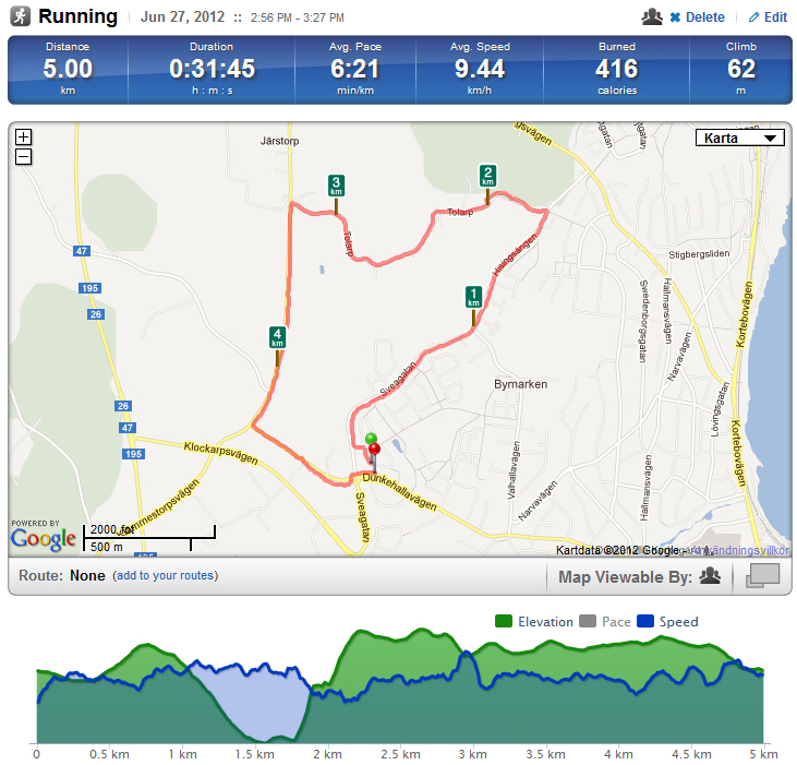 | Sprang min vanliga runda ”bakvänt” igår, nackdelen var att den asbranta backen är precis lika asbrant fast åt fel håll, men det blir lite mindre segt mot slutet när jag slipper en lång backe. |