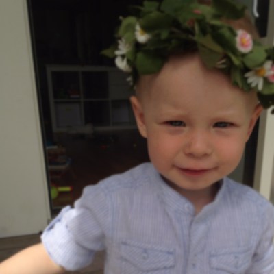 | Suddig bild i farten, som vanligt, men han var så söt i blomkrans min lilla 2-åring! |