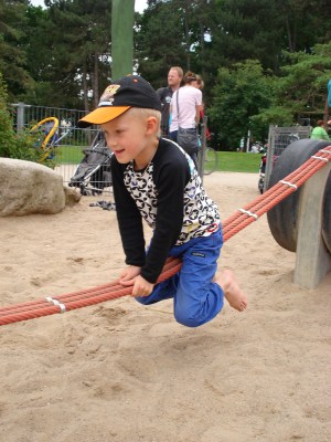 | Inte så lätt att gå balansgång trots tre rep, både jag och maken försökte åtskilliga gånger men ramlade bara ner! Oliver kör en egen stil =) |