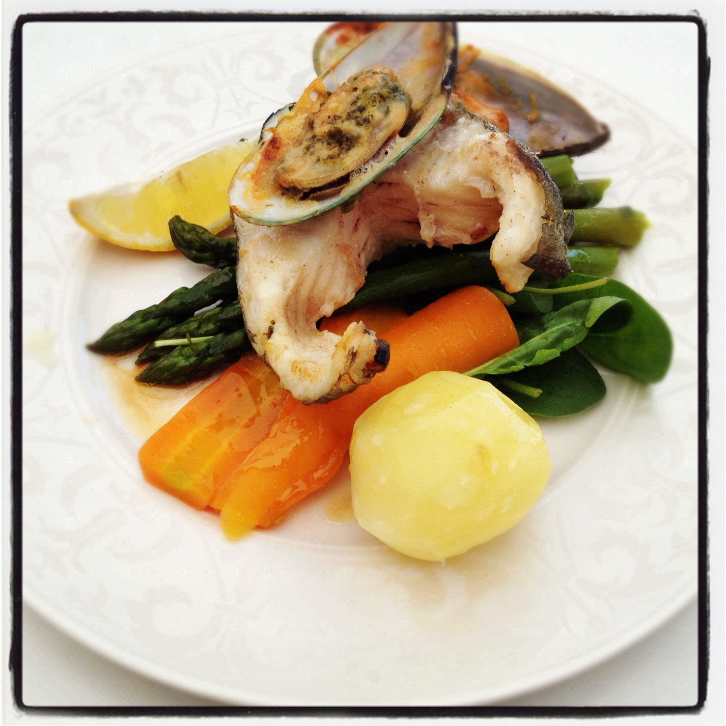 Sagt och gjort i alla fall, jag drog till citygross (efter att ha letat efter fisk på torget utan vidare resultat), där jag hittade kattfisk. Har aldrig gjort det innan, så det fick det bli. Hem och sola en stund, sen springa en runda och sen stå i lugn och ro, utan stress, och bara fixa lyxig mat till mina föräldrar och barnen. Skönt! Resultatet blev dessutom sjukt bra, nog en av de bästa måltider jag serverat =) Voilá!