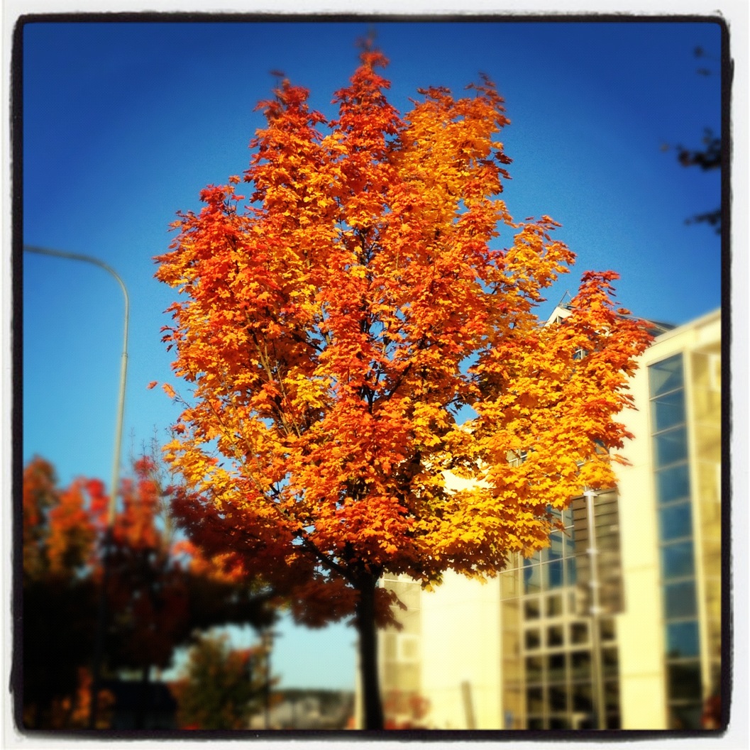 Det börjar bli väldigt vackert ute nu (ser ni vilken otrolig insikt jag har, det har nog ingen annan tänkt på). Hösten är nog faktiskt min favoritårstid, i alla fall innan alla löv hinner falla av och allt blir mörkt och grått. Men nu är det så sprakande, det är lagom kallt – man kan ha snygga kläder, stövlar och jacka utan att frysa ihjäl, det är full fart på jobbet och dagarna går ändå ganska fort. I början av hösten är det dessutom fortfarande mysigt att det blir mörkt på kvällen, så man kan tända ljus och dricka te, innan man hinner tröttna på det eviga mörkret…