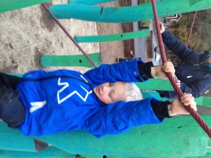 Klart det blev lekparken med, fast vi var inte helt rustade för att det blöta…