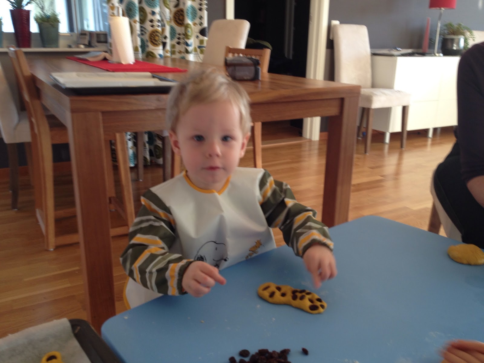 Sitter just nu ner en stund, för första gången på hela dagen tror jag… I morse fick jag den briljanta idén att baka lussekatter, så morgonen började med att jag och Lukas åkte till affären och handlade jäst och annat nödvändigt medan maken låg och sov. Som tur var så var min mor lite mer framsynt än mig, och erbjöd sig att hjälpa till under bullbaket, annars hade vi nog aldrig blivit klara! Oliver var fantastiskt duktig och gjorde två hela plåtar med jättefina lussekatter (och sniglar, fotbollar, älgar och annat)! Lukas åt mest russin, men han var inte så galen som jag var rädd för, så det gick ändå hyfsat smidigt med ett par extra vuxen-händer.