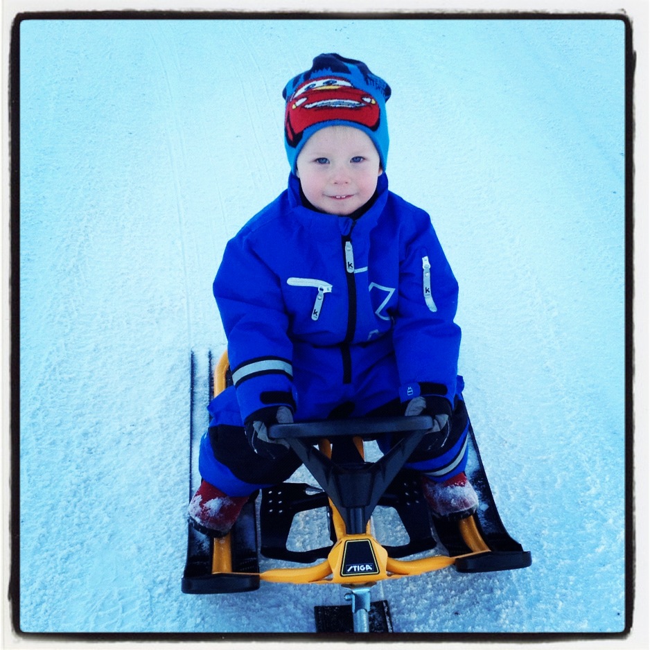 | Lukas är helt klart mer taggad när det gäller snö i år än han var förra året. Kan ju iofs bero på att han är lite mer rörlig i vinter, även med overallen på. |