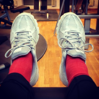 | Hade oerhört snygga röda strumpor på träningen idag… 😉 |