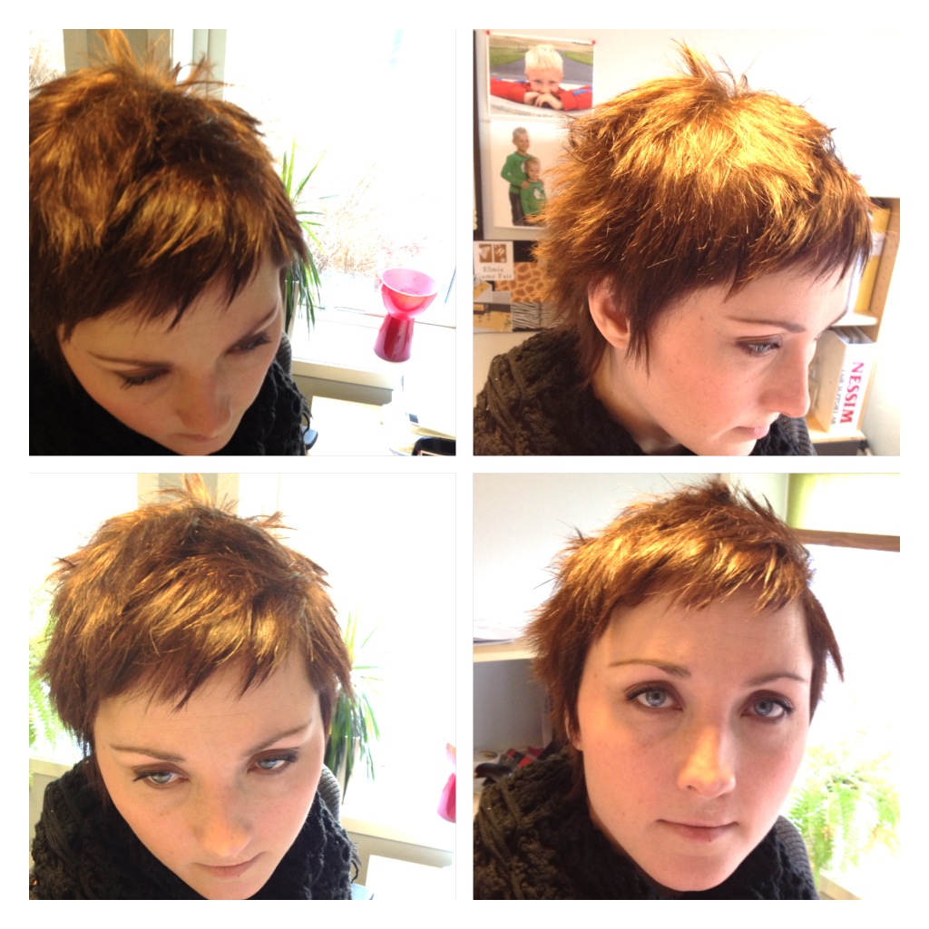 Och färg, vad ska jag göra åt färgen??? Färgar gör jag ju hemma, men det är ganska lätt att göra i ett sånt här kort hår, så lite roliga effekter kanske man kan åstadkomma. Men vad/hur?!?