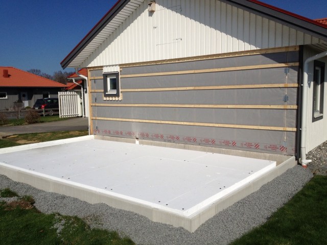 Vi har ju fått godkänt på vår bygglovsansökan och ett startbesked, och med väldans fart sattes det igång med tillbyggnaden i måndags. Vi använder Bankeryds Byggservice som totalentreprenör, så de i sin tur plockar in grävare, rörmokare, elektriker och andra som kan behövas. Nu har ju bygget bara hållit på i en vecka, men jag är hittills grymt imponerad över hur effektiva de är! Trots att det var en röd dag i går så har de på fyra dagar grävt, fyllt grunden, lagt isolering, lagt värmeslingorna i golvet och idag gjöts betongen. WOW!