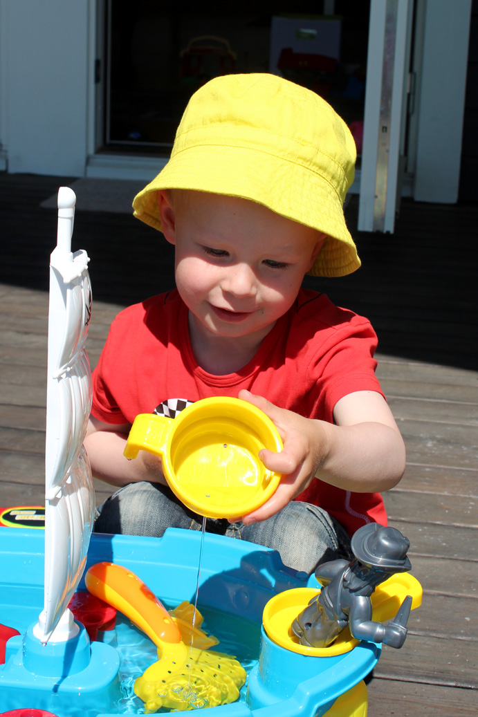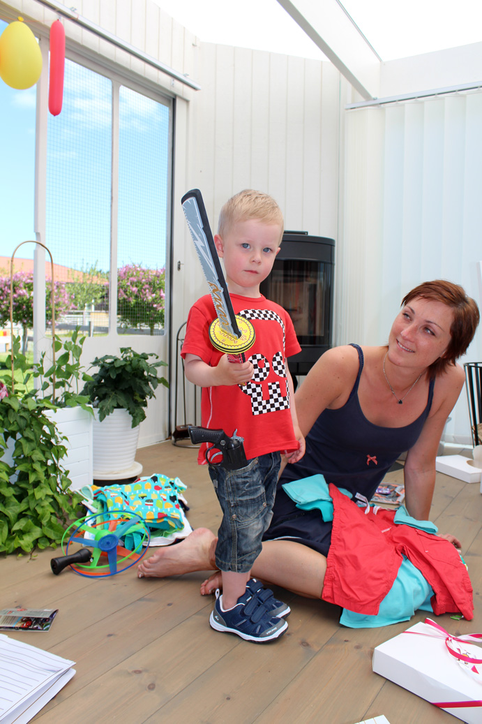 | Mycket glad över sina fina vapen han fick i födelsedagspresent! |
