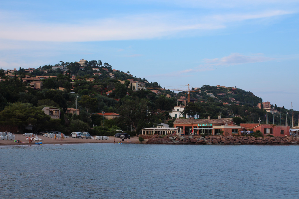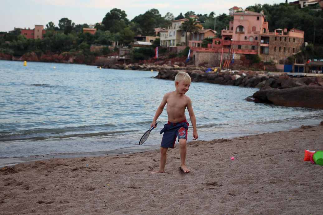 En kväll åkte vi västerut utmed kusten, där vi tidigare åkt för att komma till St Raphael. Nu stannade vi istället bara en bit på vägen, i en by som låg nere i en vik, och här spenderade vi kvällen på stranden och i vattnet. Här kom oxå en dykare upp med ett gäng fiskar han hade harpunerat (!), däribland en som såg ut som en barracuda…