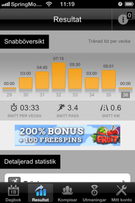 Jag tycker det är lite kul att få statistik på ungefär hur mycket man tränar, har jag tränat mindre en vecka än en annan så blir jag lite peppad att ”ta ifatt” träningen och kör kanske nåt extra pass. En bra och enkel app för detta är Shapelink, det finns även en ”vanlig” hemsida där du via datorn kan fylla i lite mer udda träningsformer eller så. Det är smidigt, du fyller bara i typ av träning samt antal minuter. Vill man krångla till det så går det även skriva in övningar, antal reps, vikter mm, men jag är nöjd över att få tiden bara.