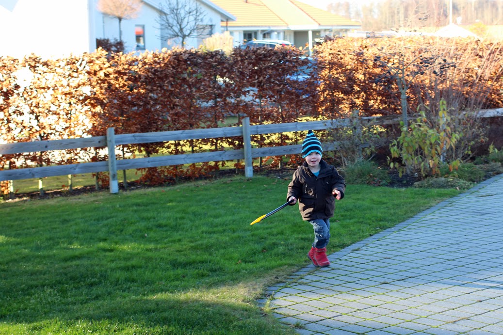 | Full fart på den lille, som för övrigt är frisk nu om man bortser från den rinnande lilla näsan. |