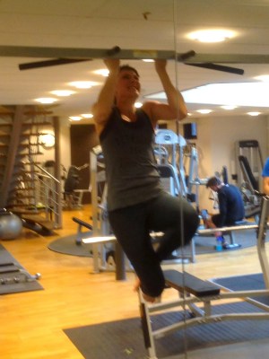 Och om det nu är nån som tror att mina pull-ups alltid ser så snygga ut så kan jag ge en bild på hur det ser ut i verkligheten med, när jag gjort de 3 jag klarar av 😉