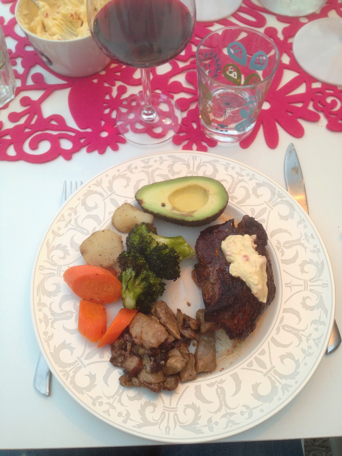 | Oxfilé, ugnsbakade grönsaker och skogssvamp…. |
