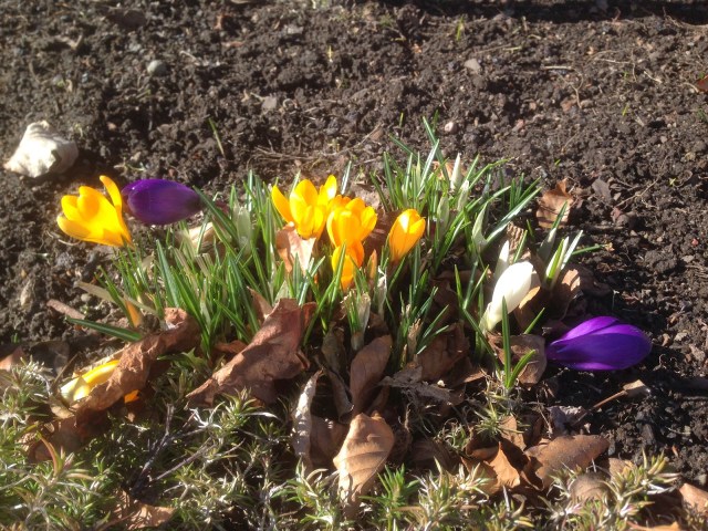 | Man får ju försöka fokusera på det som är bra, och om inte annat så är det ju i alla fall väldigt trevligt att se att krokusarna börjat titta fram i vårsolen. |
