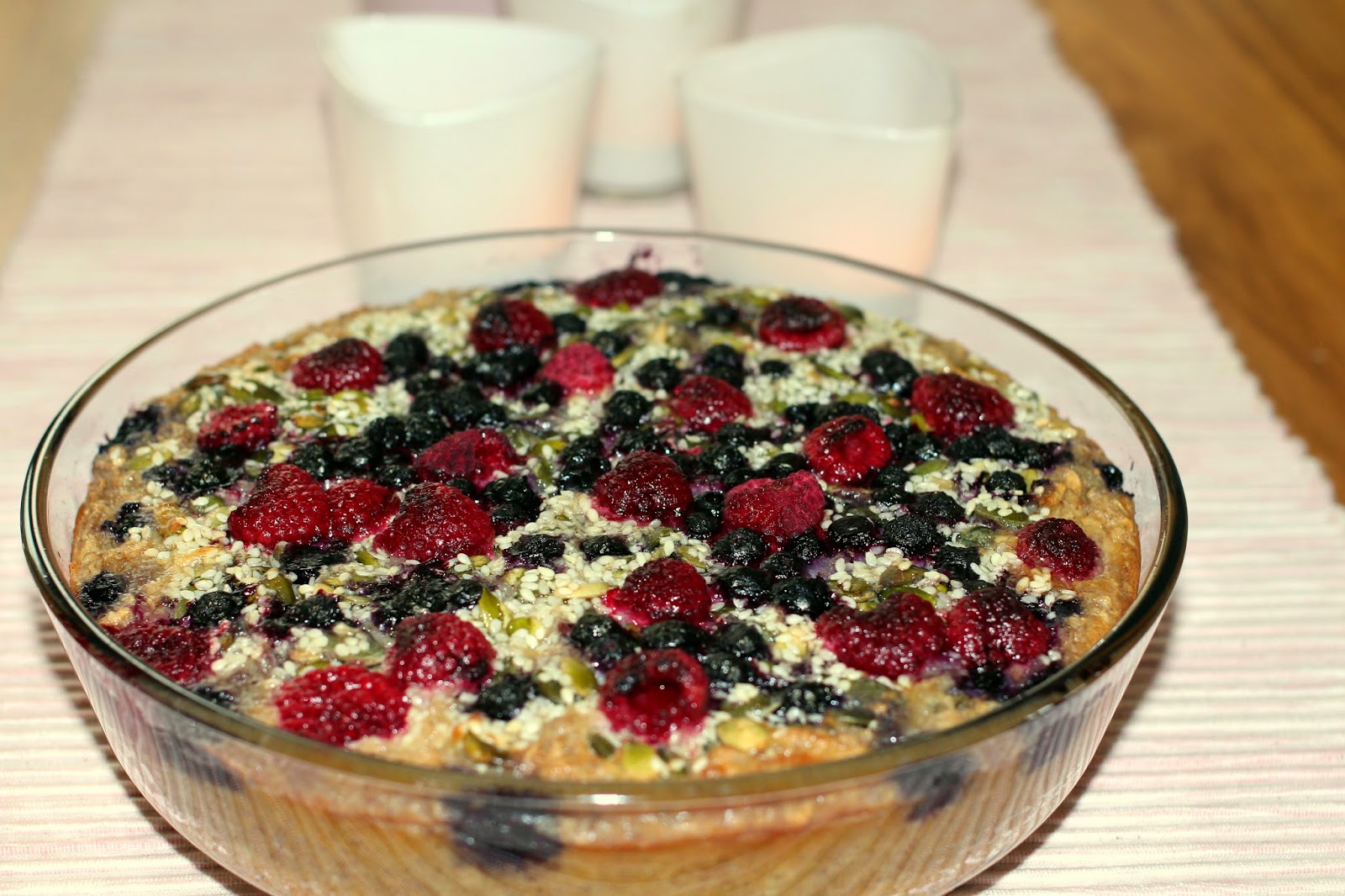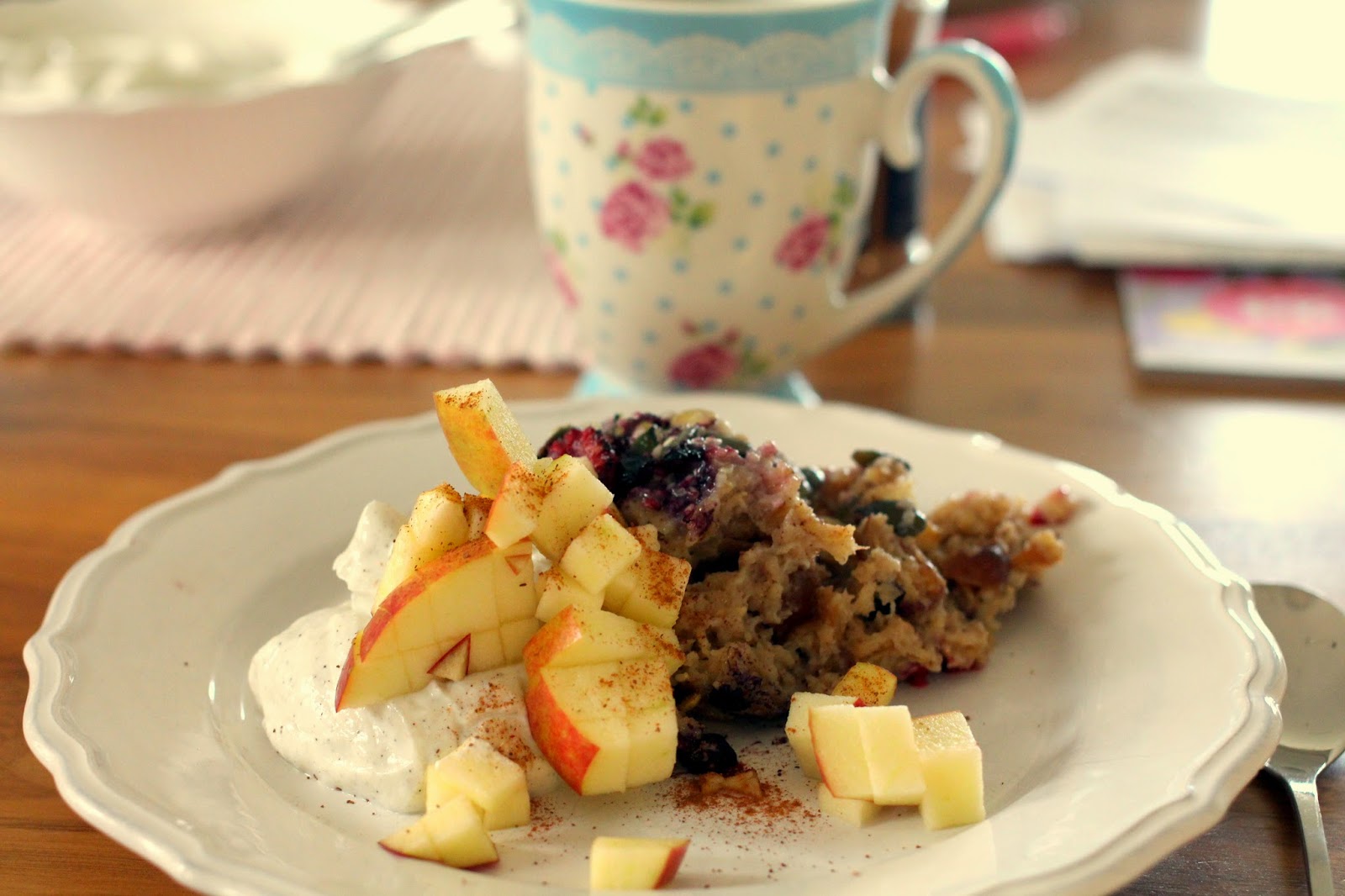 Den här frukosten (brunchen) är ett mellanting mellan gröt och pudding, och är baserad på receptet från Ica Buffé (fast jag har självklart gjort om det lite, vem kan låta bli?). Det låter kanske lite konstigt, men det är en riktigt god, varm och lite lagom söt frukost.