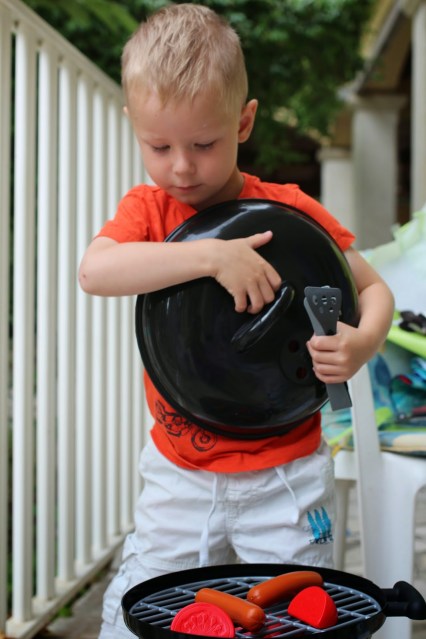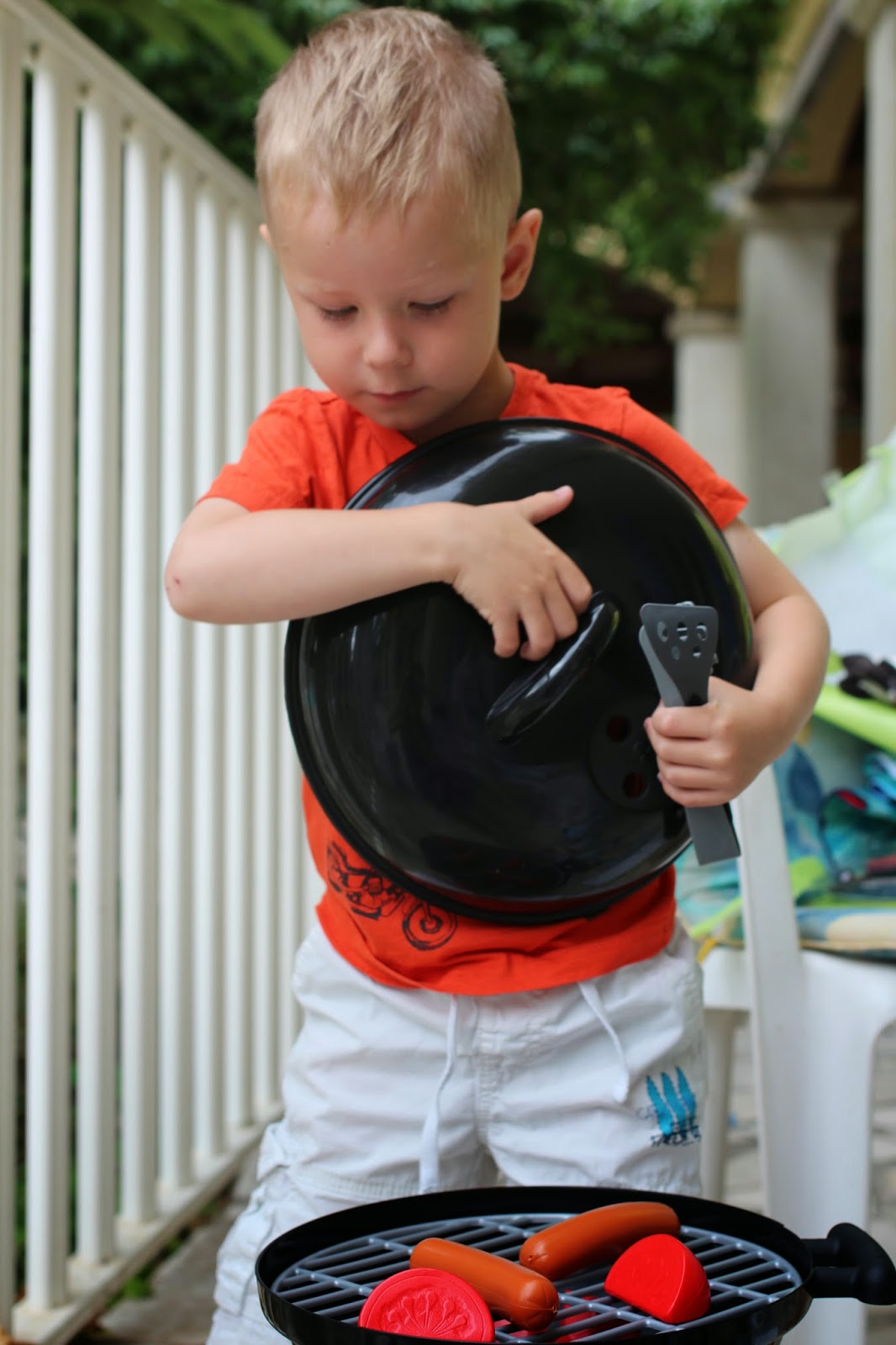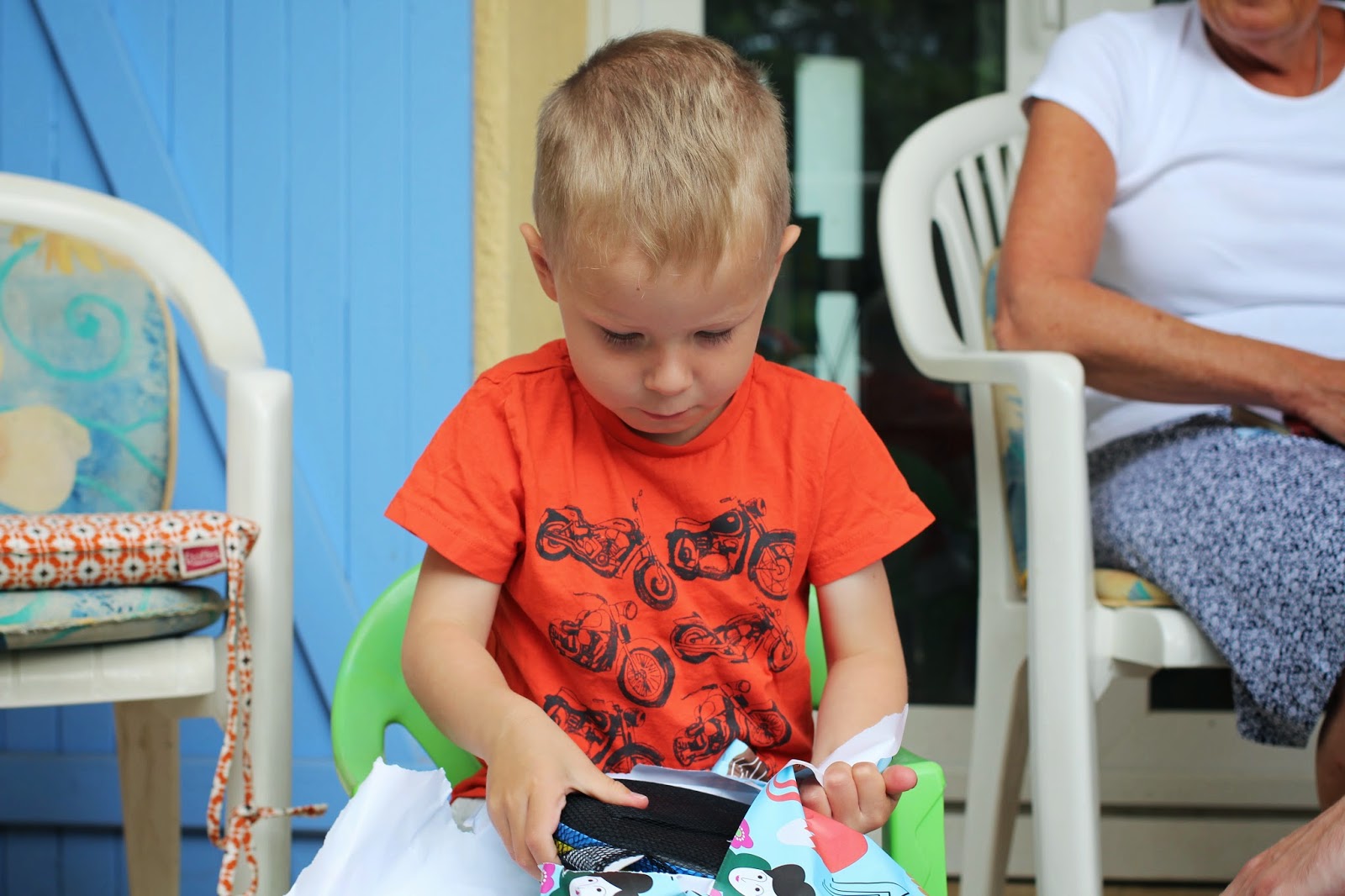 Den allra första dagen i huset passade vi på att fira Lukas 4:a årsdag, några dagar tidigt, men vi hade ju köpt en hel del saker som han kunde ha i poolen så det kändes ju fånigt att vänta. Det blev en riktig kickbike, en efterlängtad leksaksgrill (hoppas att matintresset håller i sig) och en massa annat roligt.