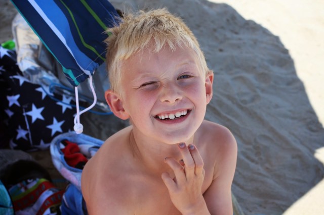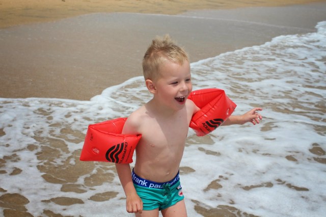 Det var rätt så blåsigt den här veckan, så en av dagarna var vi ute vid havet nästan hela dagen. Otroligt roligt med en massa vågor, och minst lika varm i havet som i poolen (ca 26 grader). Jag tror jag hade lika roligt som ungarna i vågorna, men det gällde ju också att hålla hårt i barnen, speciellt Lukas, så de inte åkte under.