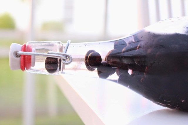 Låt den stå ljust i fyra veckor, och vänd på flaskan då och då för att blanda runt allt. Efter en månad är det dags att sila av drycken, och välja om den ska bli snaps eller likör – helt enkelt genom att smaka dig fram på sötman! Här efter ska flaskan förvaras mörkt, men mår bra av lagring och ska tydligen helst inte drickas förrän tidigast efter 6 månader – jag skriver tydligen, för hit har jag ju i ärlighetens namn inte kommit än.