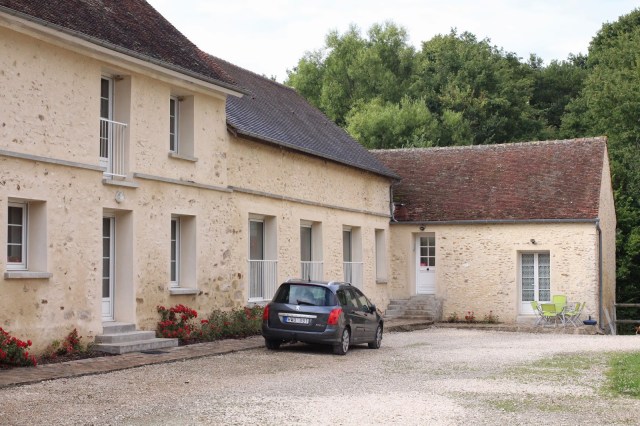”Bondgården” utanför Paris blev en glad överraskning, det var inte alls så sunkigt som det såg ut på Google Maps, utan det var snarare tom fräschare än det stora fina huset i Montpellier! Det är nog ca 3-4 familjer som hyr olika delar av de stora husen här, och inomhuspoolen är visserligen gemensam, men vi har hittills varit helt själva där förutom 5 minuter första kvällen. Vädret under den här veckan är väl ingen höjdare däremot, ca 20 grader och tämligen mulet med frekventa regnskurar, så den brännan man samlat på sig vid Rivieran lär väl försvinna innan vi kommer hem… =/