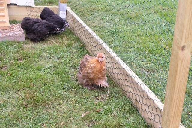 I lördags flyttade vi hönor, hönshus och hönsgård till vår tomt, från mammas. Hon har provat att ha dem i 14 dagar och kände väl att hon inte riktigt ville ha ansvaret – helt ok, eftersom vi visste att det var något av en chansning att ge bort höns, och vi visste ändå att vi gärna tog emot dem om det skulle vara så. Däremot blev det ju lite av en oväntad arbetsdag att flytta allt, i värmen, och så känns det såklart väldigt synd att det inte blev så bra som vi hoppades som present.
