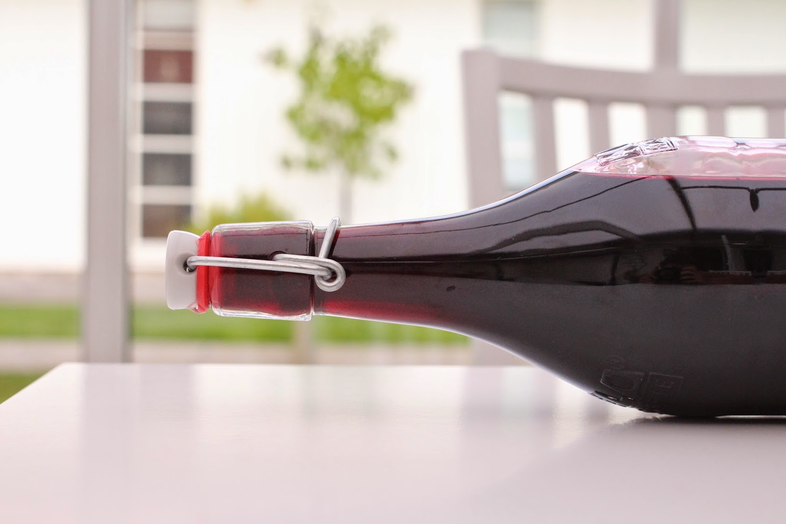 För det första kan jag ju säga att den klara färgen som ni såg på första bilden väldigt snabbt färgades nästan svart i flaskan – Aroniabär är makalöst pigmentrika!