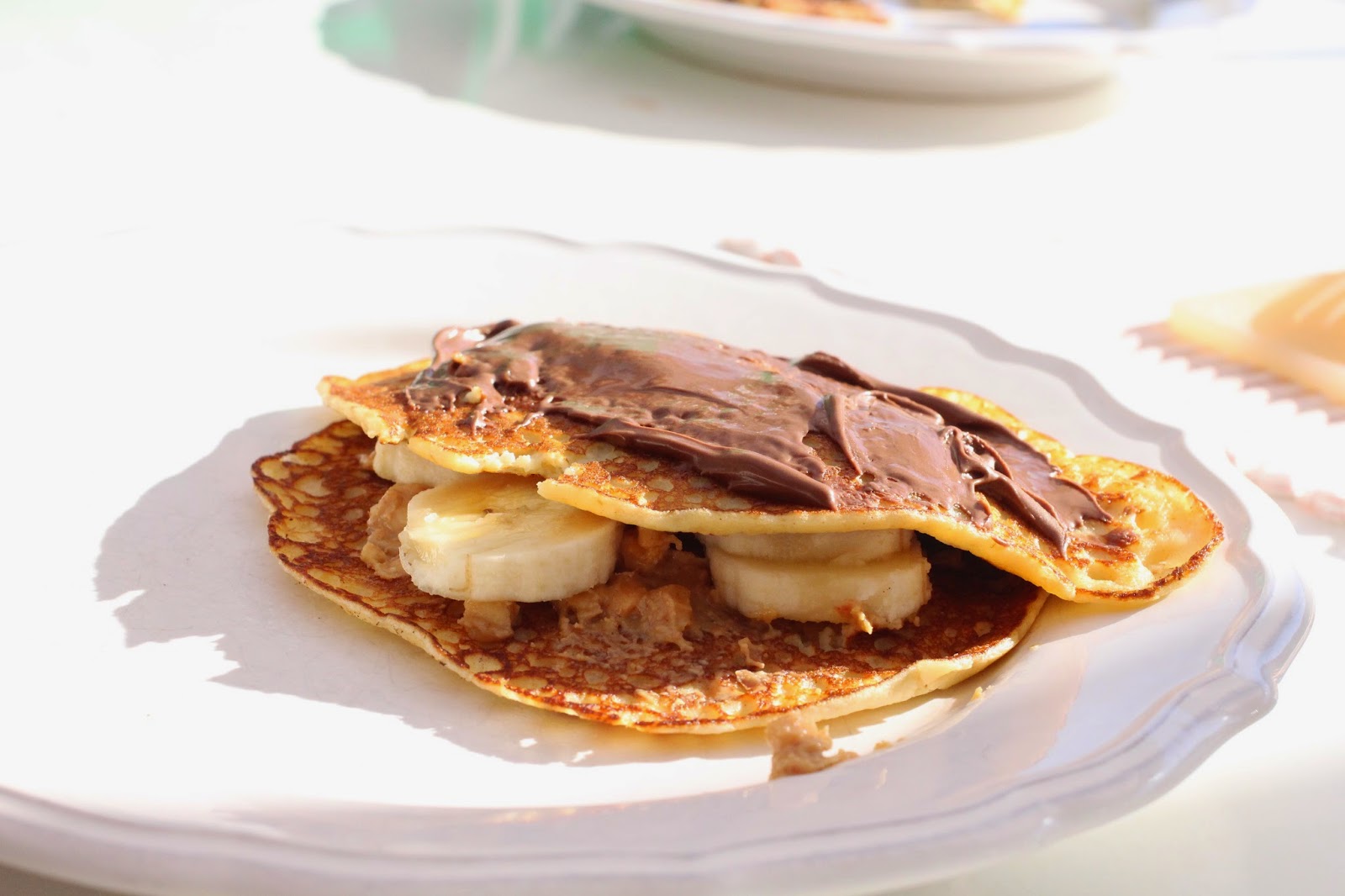 | Bananplättar för två:1 dl fil 1,5 el havregryn – mixa med handmixer till en slät gröt 1 banan 2 ägg lite salt. Mixa ihop och stek i kokosolja. |
