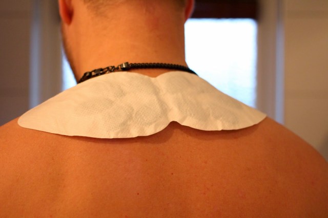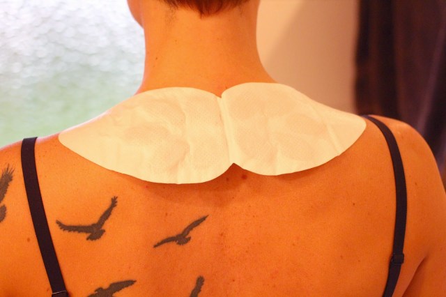Det finns två varianter, en lite mindre som man använder på nacke eller mindre ytor som tex handleder, och en större som man kan använda i tex. svanken. Jag har fått testa den mindre varianten, perfekt när man är spänd över axlar och skulderblad efter tex en dag framför datorn. Man öppnar helt enkelt förpackningen och klistrar fast ”omslaget” där man vill ha det, sen blir det sakta ca 40 grader varmt – och det håller värmen ca 8 h.