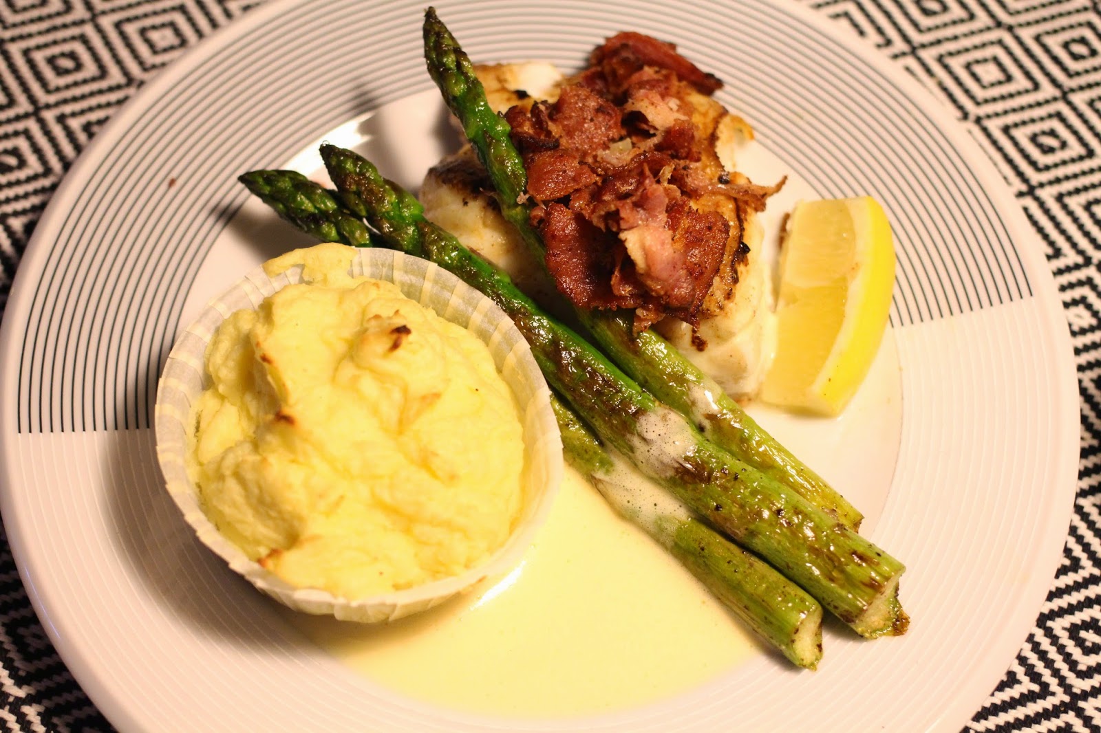 Självklart hälsade vi på brorsan med, och som lite ”aktivitiet” så lagade vi mat ihop, det blev riktigt gott: Halstrad torskrygg med bacon, en potatis- och jordärtskocksbakelse, sparris och hemgjord hollandaise… MUMS!