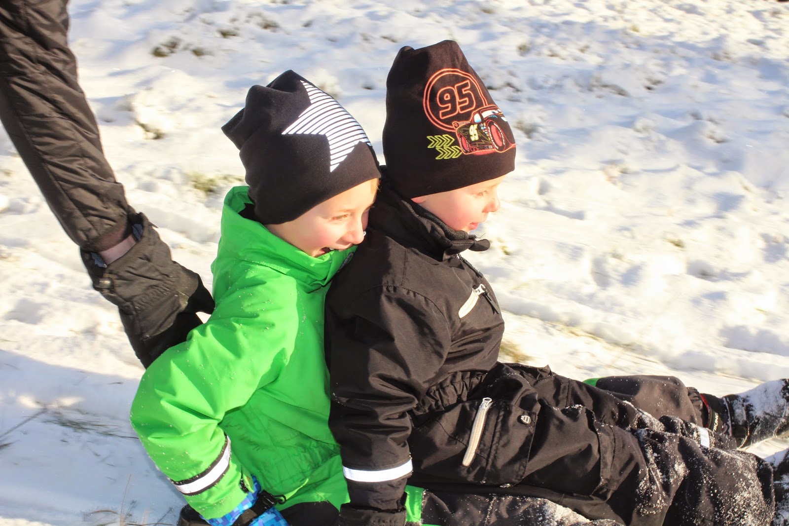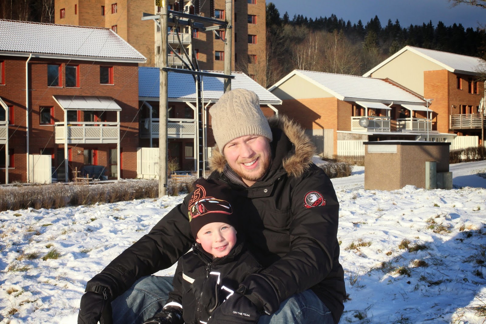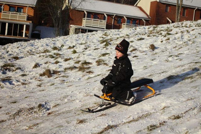 | Idag, juldagen, firades den nyfallna snön med pulkaåkning för stora och små! |