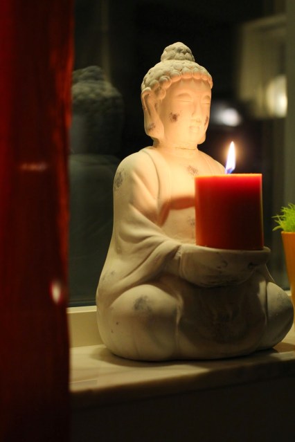 I vårt sovrum har det blivit så att jag har med tiden köpt och ställt in ett antal ”Buddhas”, de flesta inköpta på Indiska vid lite olika tillfällen. Jag tycker att det är en väldigt mysig och fridfull figur, som passar bra in i ett rum där man mestadels vilar. Tycker ändå det är lite intressant vilka symboler man väljer till olika religioner, den här fridfulla varianten är väl mycket trevligare än en man uppspikad på ett kors?!?