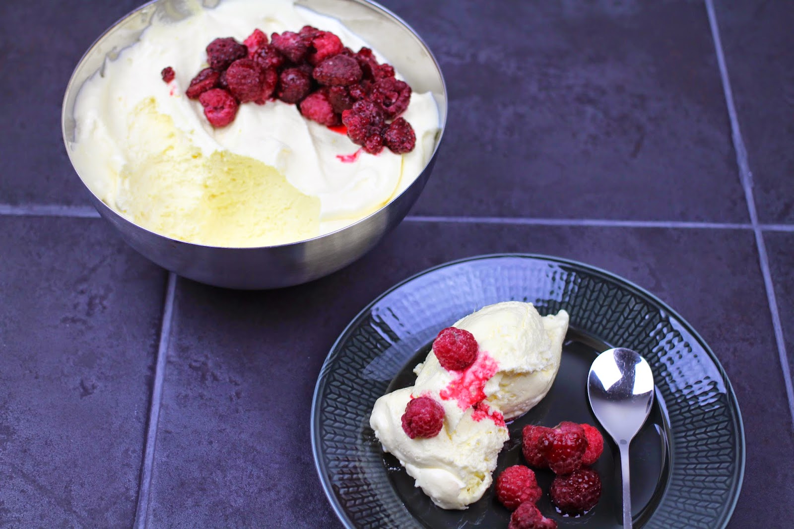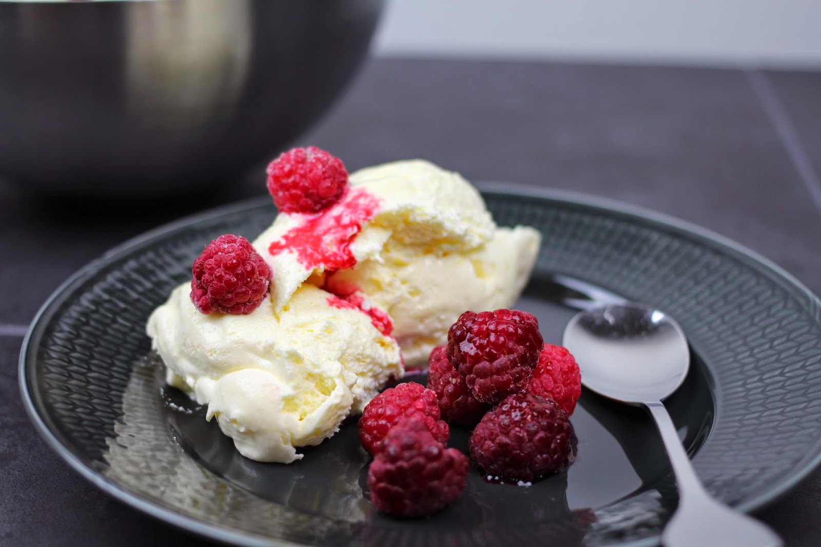 Servera med hallon, klassiskt serveras den även med vispgrädde, men då blir den ganska mäktig tycker jag.