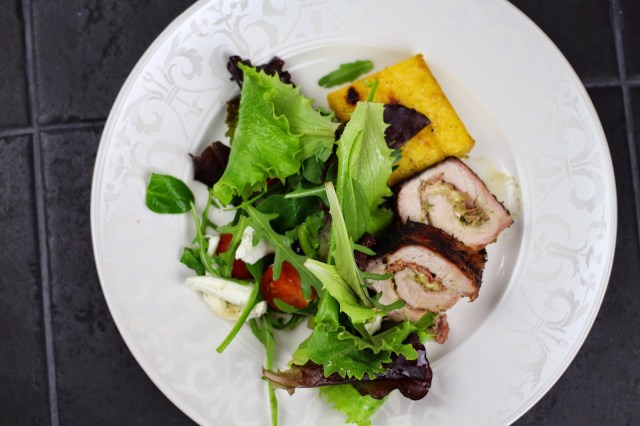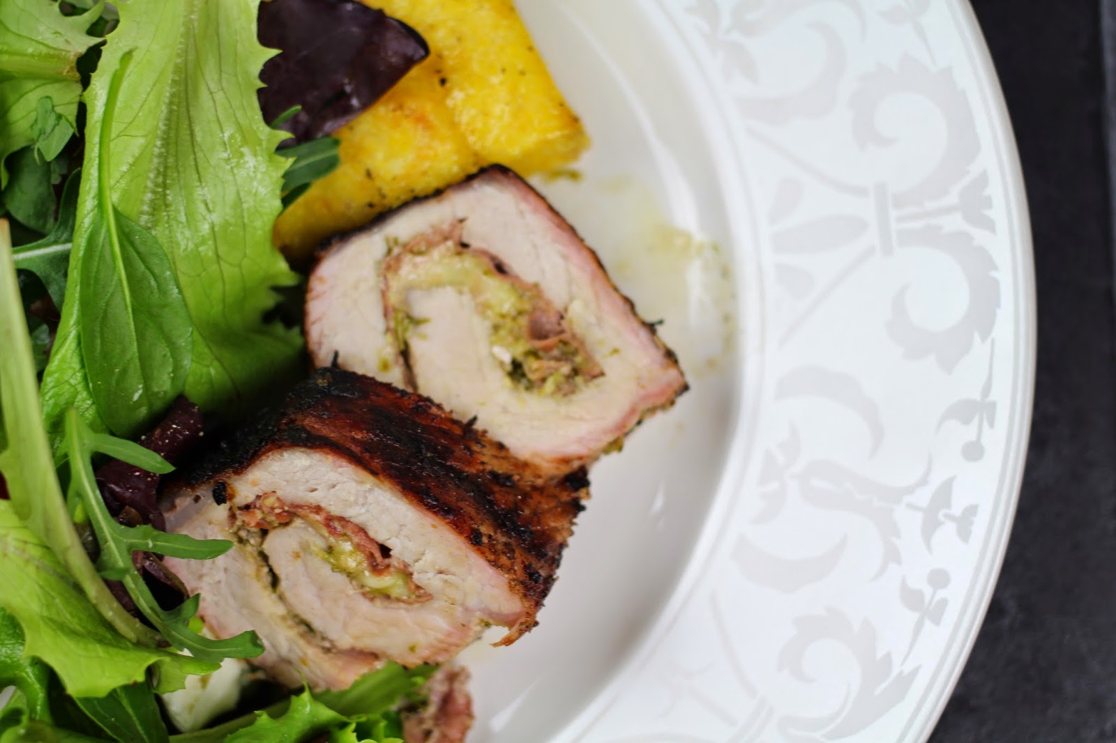 Igår var ju sånt fantastiskt väder, så vi passade på att grilla lite. Jag ville hitta på nåt nytt, så det blev en rullad fläskytterfilé med grillad polenta till (har aldrig gjort polenta innan) och det blev väldigt lyckat!