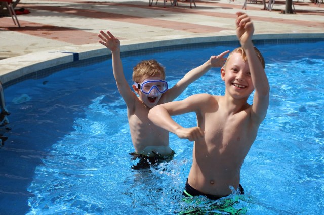 | En i och för sig iskall pool, men ett rätt skönt poolområde med lite skydd från vindarna när de blev för kyliga. |