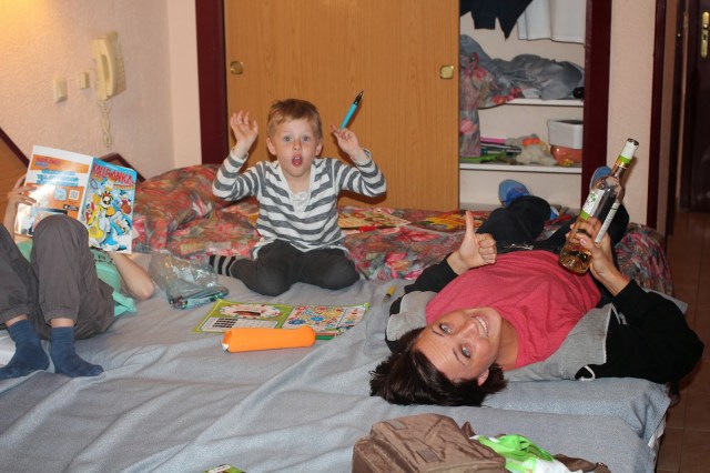 | Det mikroskopiska hotellrummet, man kunde inte mötas i gången brevid sängarna ens, och väggar och dörrar var gjorda i papp av ljudisoleringen att döma…. |
