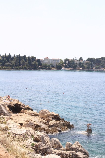 Havet – Kroatien (där VI var) är inte perfekt om man har väldigt små barn, jag tänker 1-3 år nånting. Dels är det stenstränder med varierande storlek på stenen, från stort ”grus” till stora sjöstenar – och vidare till klippor och gjutna cement”stränder”. Stenarna är mjuka och runda, men dels blir de väldigt varma och dels är det lite svårt att gå på dem – om man inte har ett par bra badskor, vilket för övrigt är ett absolut måste om man vill kunna bada ”precis som vanligt” och vill slippa balansera sig ner i vattnet. Det finns ganska gott om sjöborrar, men mina reflektioner är att där det är en strand, där har man rensat åtminstone den inre delen av sjöborrar, alltså är det ingen direkt fara för tex barnen att gå ner i vattnet för sjöborrarna kommer inte förrän efter barnen inte bottnar.
