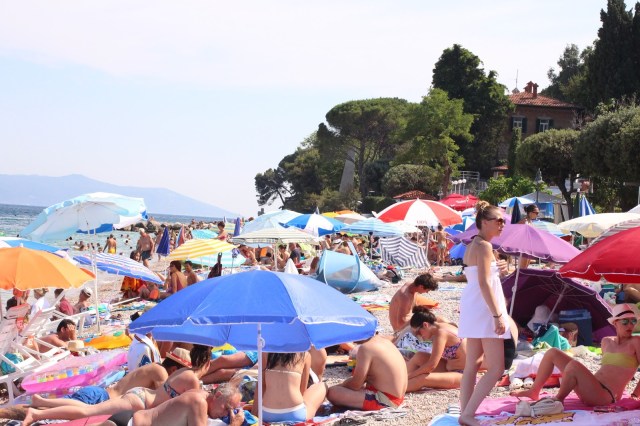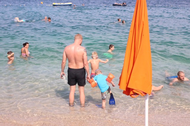Stränderna är väldigt grunda, och vår erfarenhet är att det är VÄLDIGT mycket folk där. Vi åkte oftast ner på eftermiddagen när kroaterna själva åkte ner (efter jobbet gissar jag), och har du tur hittar du någon plats att lägga din handduk på, ungefär. Konstigt nog funkar det ändå väldigt bra, till och med för mig som hatar när det är mycket folk, alla sköter sig själva och man respekterar varandras små utrymmet. Mest folk var det en söndag när vi åkte ner, då var det så tätt mellan handdukarna att man knappt kunde gå, men även det funkade ändå.
