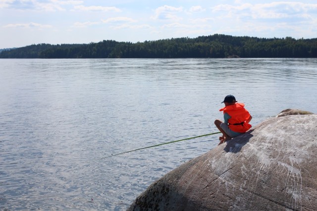 Dagen var på det stora hela lyckad, förutom att tålamodet hos barnen tröt extremt fort i och med att inte fisken var på hugget… Tack vare det fantastiska läget så kunde i alla fall jag och maken sitta och ta en kall öl i lugn och ro medans barnen lekte vi strandkanten, vilket gav lite guldkant på dagen för oss alla tror jag!