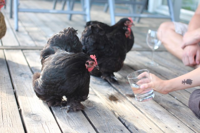 Som vanligt när vi är ute och grejar i trädgården så fick även hönorna vara med, och man kan väl säga att de är både sällskapliga och nyfikna, speciellt om vi äter något som verkar intressant 😉