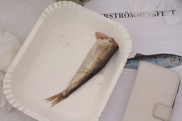 Smaken då? Här var det betydligt fler som backade än när folk kände doften… Dock tyckte jag att det faktiskt var ganska salt och gott, och vi var fyra stycken av ca 25 som faktiskt åt upp och gillade surströmmingsklämman.