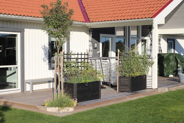 | Är för övrigt väldigt nöjd med barnens altan som vi byggde förra sommaren. Tomaterna har vuxit till sig med, men det vete katten om så många hinner mogna ordentligt innan det blir frost… |